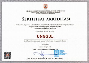 (18/4), Semarang. Magister Teknik Sipil FT Undip peroleh akreditasi UNGGUL dengan nilai 375 dari Lembaga Akreditasi Mandiri Program Studi Keteknikan (LAM Teknik) Badan Tetap Akreditasi